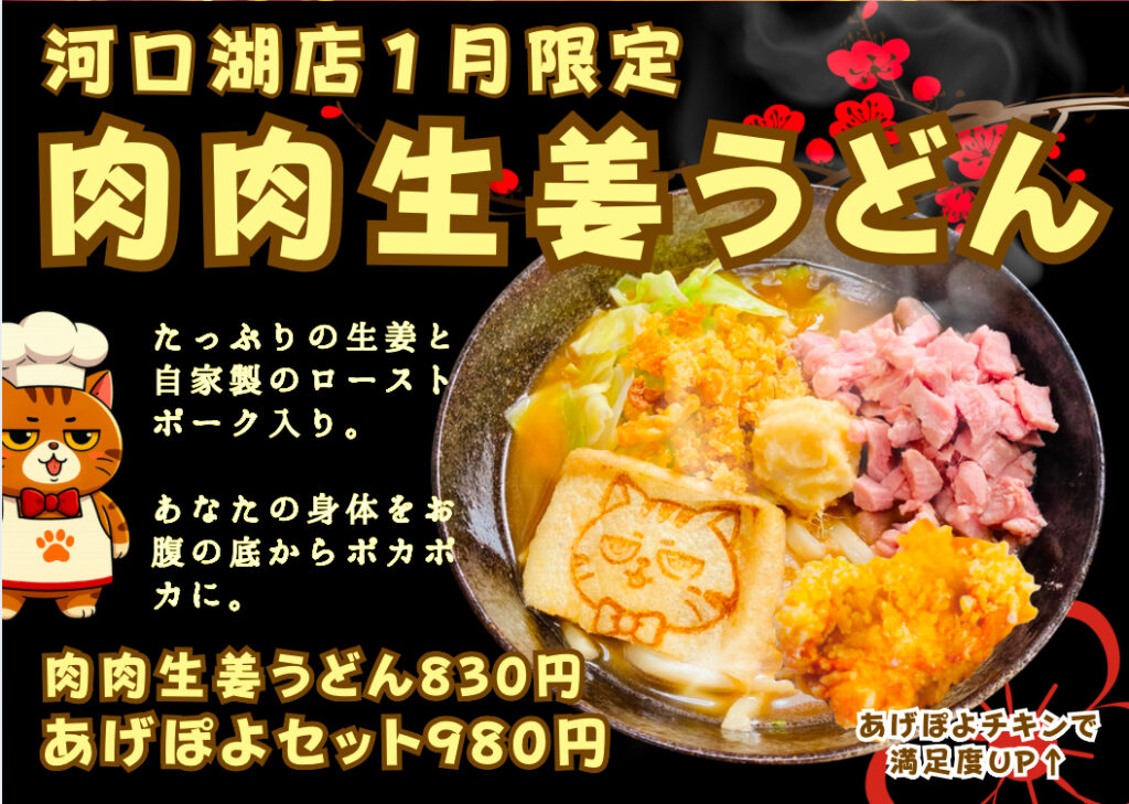【河口湖店】肉肉生姜うどん 830円